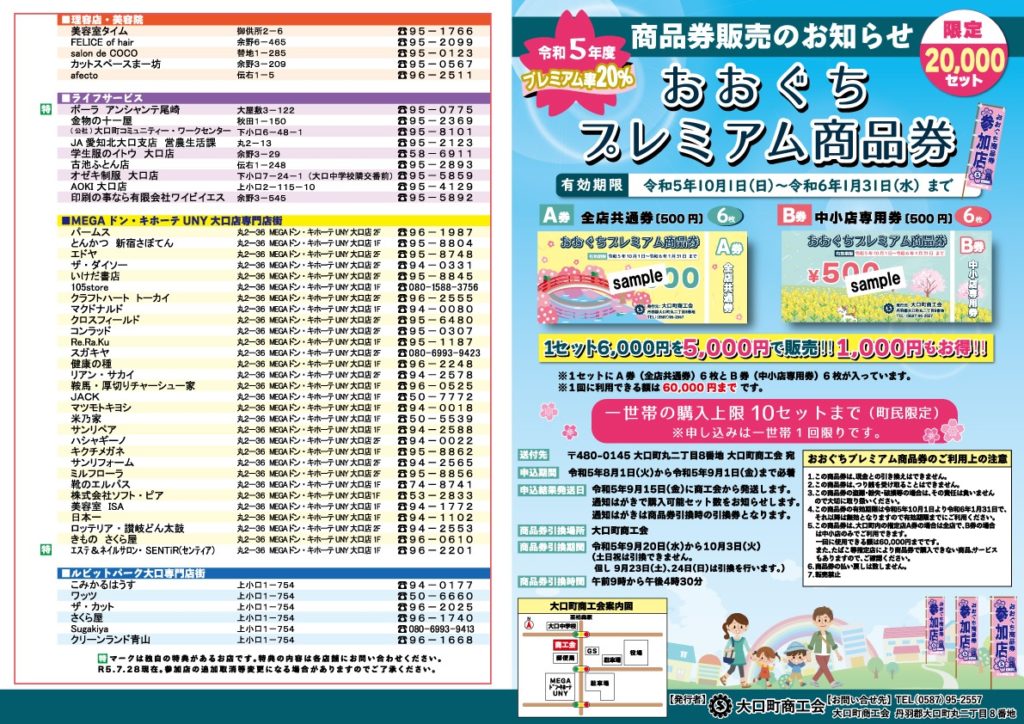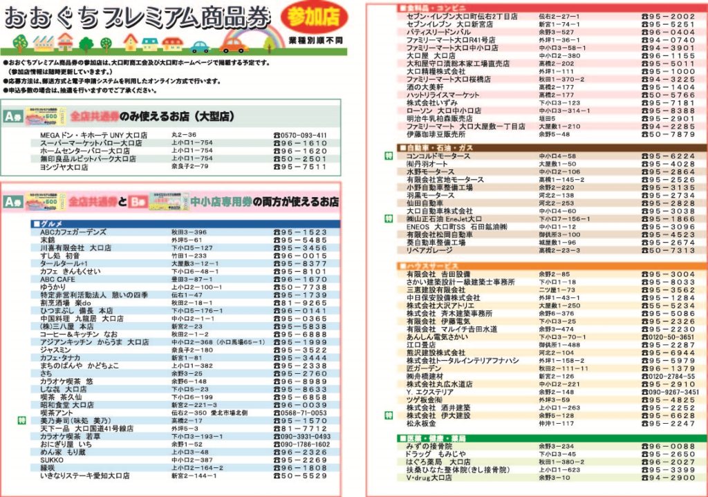 おおぐちプレミアム商品券の参加店舗一覧(チラシ)