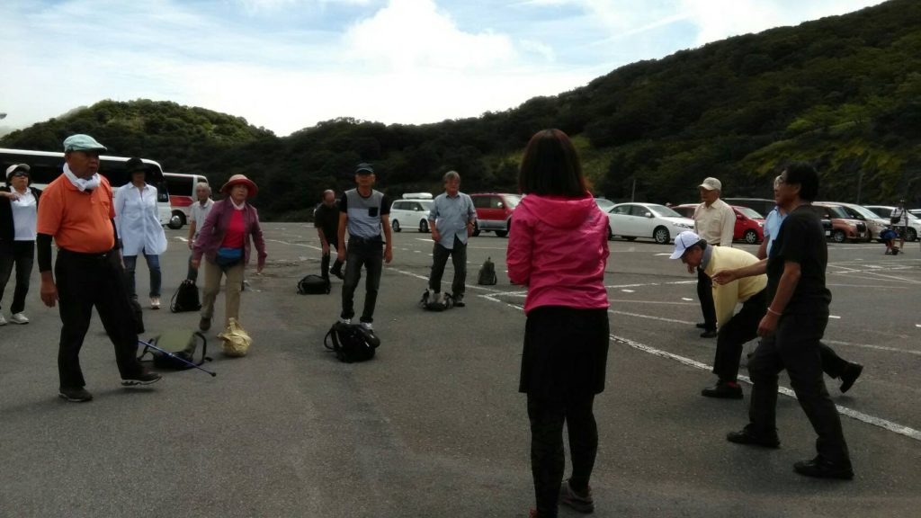 到着したら、みんなで準備運動をしました。